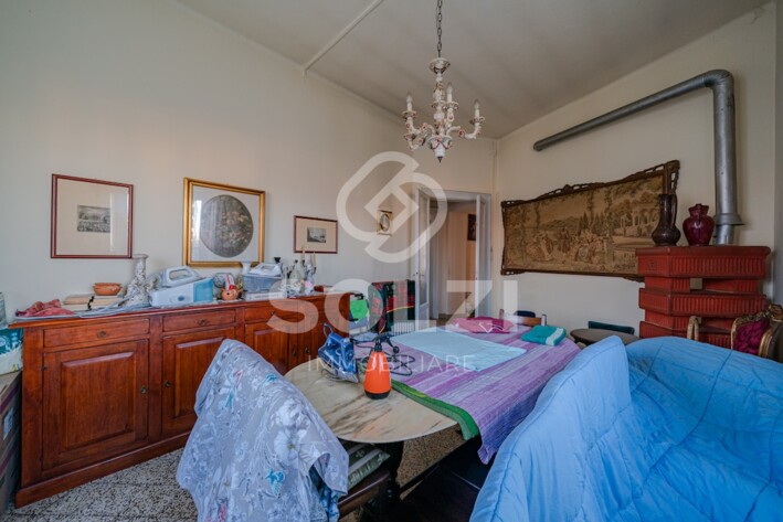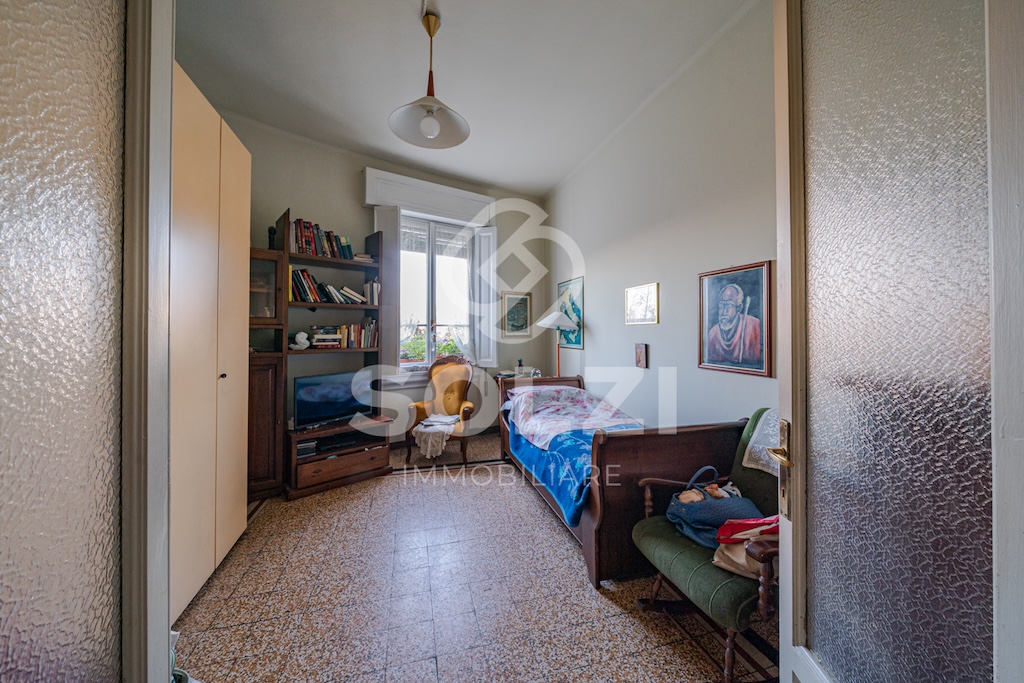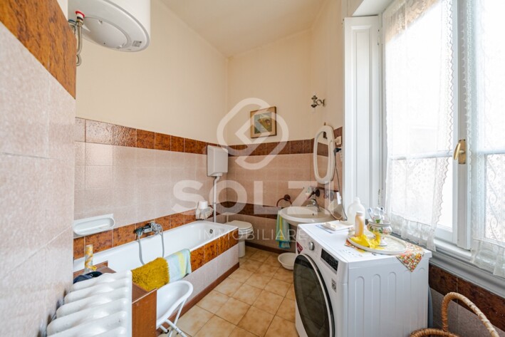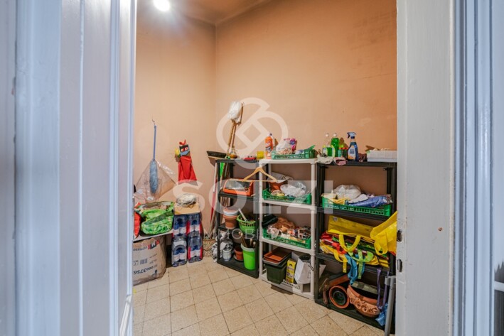 L'immobile è inoltre dotato di due ampi solai di cui uno finestrato e tranquillamente utilizzabile come studio (entrambe i solai confinano con l'appartamento) e di una grande cantina. Pur non essendovi il garage, l'immobile ha diritto al parcheggio di un'autovettura all'interno del cortile condominiale.